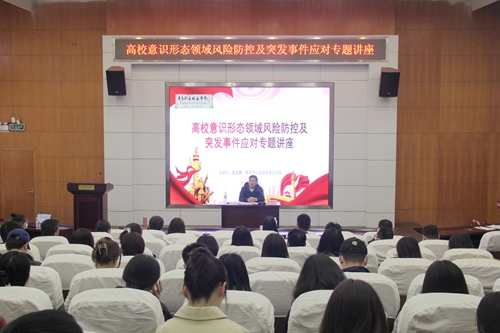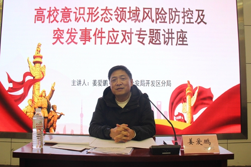 青岛市公安局开发区分局政治安全保卫大队大队长姜爱鹏作“高校意识形态领域风险防控及突发事件应对”专题讲座