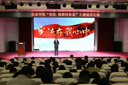 为深入开展宪法宣传教育,增强大学生法律意识,大力弘扬宪法精神,4月10日晚,信息学院在艺术厅举办“宪法,我想对你说”主题演讲比赛,信息学院党总支书记李明杰、辅导员教师代表、信息学院“宪法卫士”学生普法团成员以及2022级全体学生参加了此次活动。