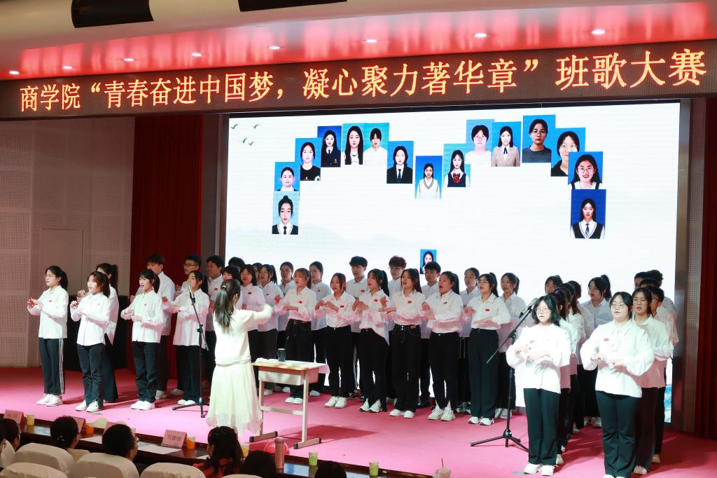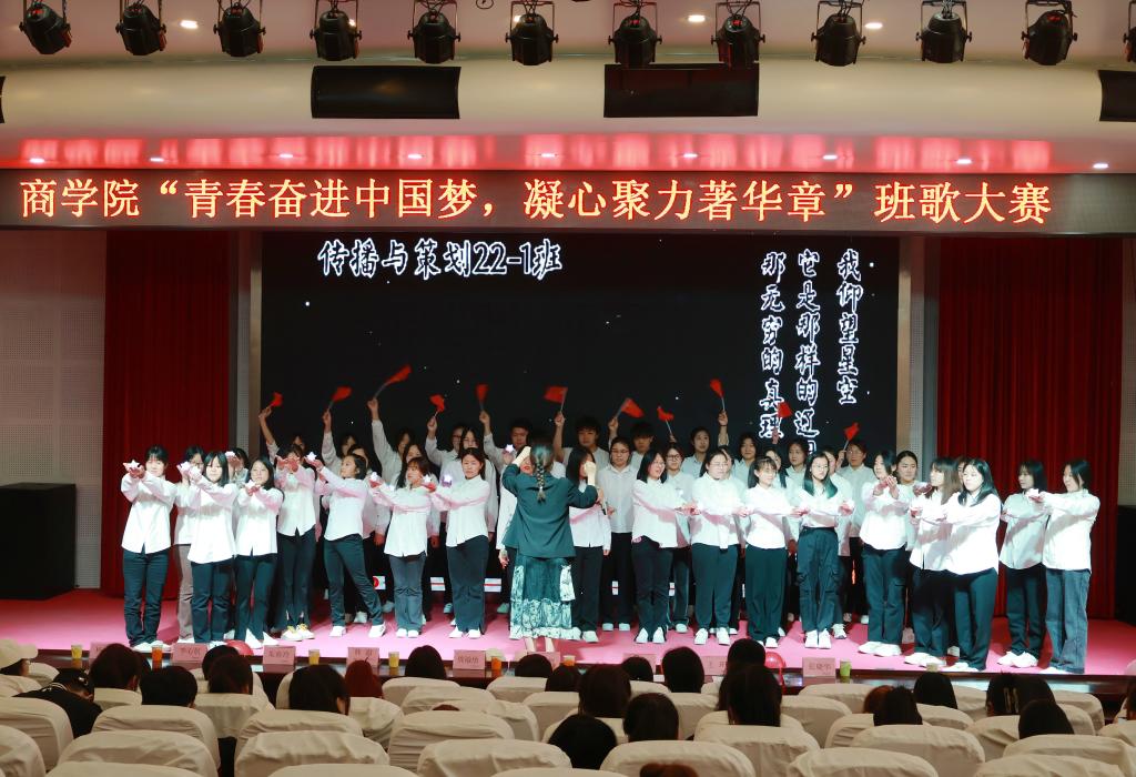 活动现场,各班级服装整齐、精神饱满,青春飞扬的面庞和激奋昂扬的旋律感染着现场每一名观众。2022级大数据与会计专业2班以一首气势恢宏的歌曲《天下》拉开班歌大赛帷幕;2022级市场营销专业1班带来的《夜空中最亮的星》让信念的力量涌进每一位在场观众的心头;2022级电子商务专业3班精心编排的《相亲相爱一家人》充分演绎了大学生的热血青春和温暖友情,同时将比赛气氛推向高潮。商学院入围决赛的11个班级逐一登场,用嘹亮的歌声唱响对伟大祖国的热爱和对未来生活的美好憧憬,汇聚成新时代学子团结奋进的精神力量。大赛最终评出一等奖一名、二等奖三名、三等奖五名。