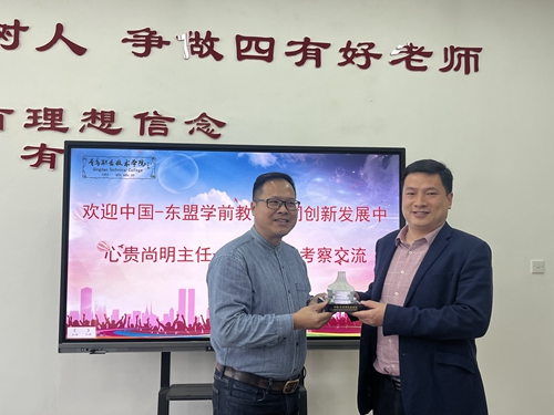 刘浩代表中国-东盟学前教育协同创新发展中心向教育学院赠送纪念品