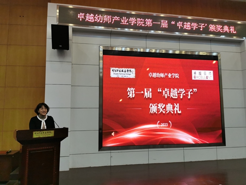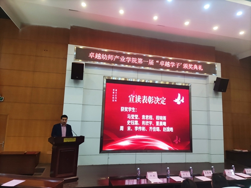 为进一步加强学前教育人才培养、促进产教融合,4月18日,教育学院在报告厅举行卓越幼师产业学院第一届“卓越学子”表彰大会。学校副院长乔璐,卓越云师教育科技有限公司总经理、卓越幼师产业学院院长商传辉出席大会,学校教育学院副院长孙会扬,卓越幼师产业学院教师代表、全体学生参加了此次活动。