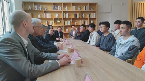 来访活动中,Fischer一行参观了学校国家职业教育数控技术实训基地,并在听课后和青德学院学生代表进行了座谈,向大家简要介绍了比勒菲尔德中等企业应用技术大学的基本情况。学生代表依次用德语作了自我介绍并就自己感兴趣的问题进行提问。Fischer对学生们的德语水平表示惊叹并逐一回答了大家的问题。他着重提到,希望大家去FHM前能加强德语应用和专业课学习,全面提升自己的综合能力,为将来在德国学习和生活做好充足的准备。最后,他为学生们送上了最美好的祝愿,期待未来能和大家在FHM相见。