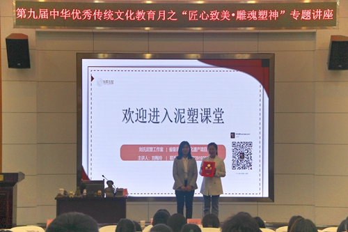 4月20日下午,商学院在报告厅举办儒商大讲堂之“匠心致美•雕魂塑神”非遗文化讲座。活动特邀山东省级非遗项目刘氏泥塑传承人刘梅玲担任主讲,商学院师生代表近200人参加讲座。