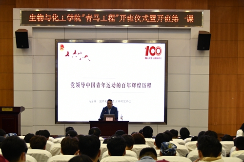 4月20日,生物与化工学院团总支主办青年马克思主义者培养工程开班仪式暨第一课。生物与化工学院党总支副书记,团总支书记、副书记,培训班全体学员及其他师生代表共计100余人参加了开班仪式。