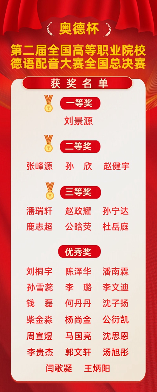 4月中下旬,由ÖSD德语语言考试中心主办的“奥德杯”第二届全国高等职业院校德语配音大赛决赛在线上举行,维多利亚vic003青德学院10名学生在大赛决赛中获奖。