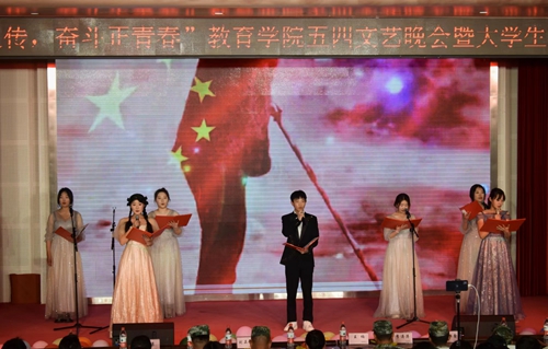 4月26日晚,教育学院五四文艺晚会暨大学生艺术节展演活动在学校艺术厅举行。教育学院党总支、团总支相关负责人,军训教官代表,教育学院2022级辅导员,各二级学院学生代表以及教育学院2022级全体学生共同参加了活动。