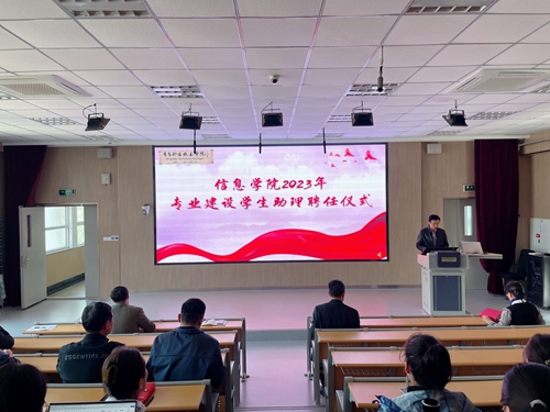 5月4日下午,信息学院在修能楼301举行2023年专业建设学生助理聘任仪式,信息学院教师代表、学生代表参加了聘任仪式。仪式由信息学院党总支副书记李海民主持。