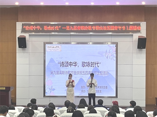 5月4日晚,由学校宣传部、团委主办,旅游学院立人书院、珠山书院社团承办的“诗颂中华,歌咏时代”第九届青职诗歌节暨庆祝五四青年节主题活动在学校报告厅举办。各二级学院师生代表约160余人参加了活动。