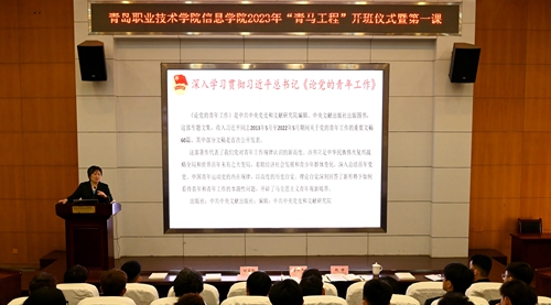 青岛市团校副校长、党总支书记刘富珍为信息学院“青马工程”学员讲授开班第一课