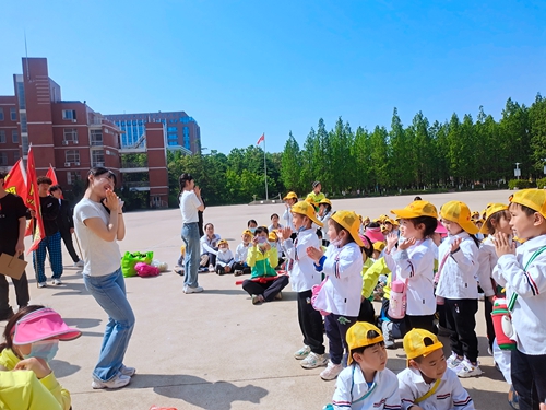 教育学院学生带领小朋友们表演挖呀挖互动儿歌