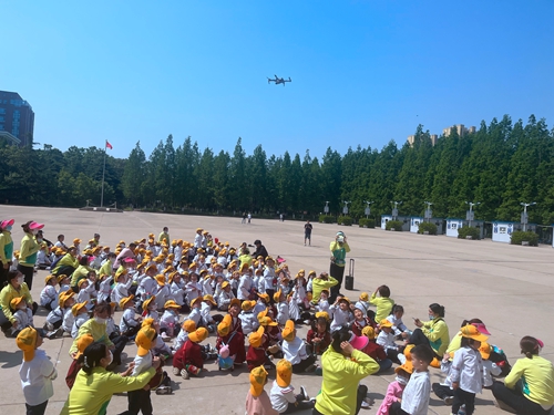 小朋友观看无人机放飞