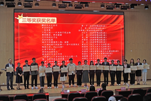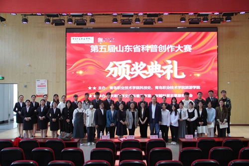 5月12日,由校科技处、旅游学院主办,旅游学院李涛海洋文化科普工作室、灰鲸科普志愿服务协会承办的“第五届山东省科普创作大赛”获奖师生颁奖典礼在学校创意楼B401教室举行。旅游学院相关负责人、旅游管理专业部骨干教师参加了活动。
