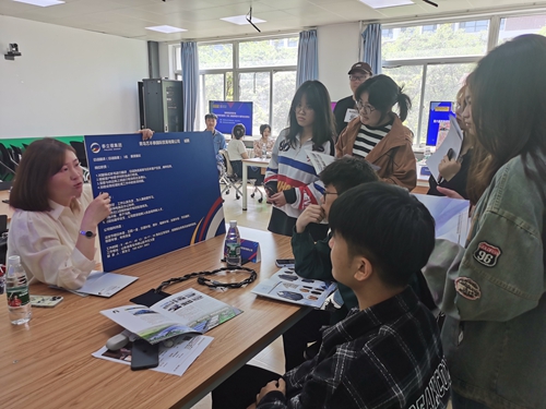 企业招聘现场,学生与企业进行交流