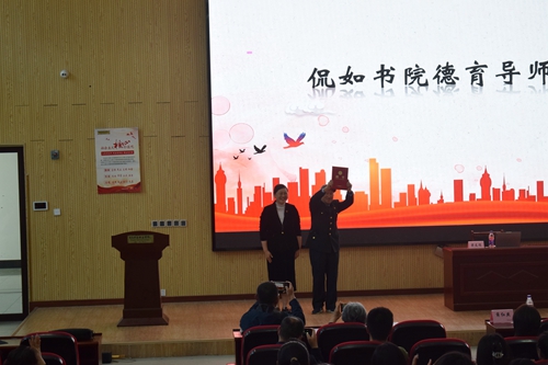 教育学院党总支书记薛红燕为梁友德颁发侃如书院德育导师聘书