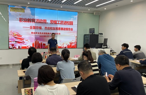 5月15日,海尔学院(青德学院)举办了职业教育活动周“劳模工匠进校园”专题报告会。全国劳动模范、中国中车青岛四方机车车辆股份有限公司首席技能专家、学校产业教授周勇作“以技立身,以能而为”专题报告。海尔学院(青德学院)相关负责人、师生骨干参加了此次活动。活动由海尔学院党总支负责人杨春旺主持。