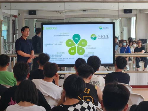 宣介会上,青岛大手新华锦康复有限公司人力总监秦盛介绍了企业的基本情况和发展前景,分享了自己从事康复保健相关的工作经历,用自己的职业经历解读如何用“微笑服务照亮每个生命”,并对学生们的实践学习提出了中肯建议。他同时在现场互动环节中解答了学生对专业群融合发展的困惑,以及个人职业规划前景等问题。体育健康学院副院长孙庆结合新《中华人民共和国职业教育法》颁布实施一周年,分享了体育健康学院深入开展校企合作、产教融合的阶段性成果。
