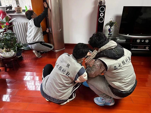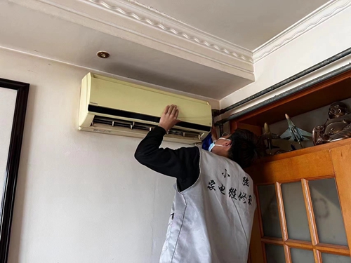海尔学院小强家电维修社到八大关社区居民家中维修空调