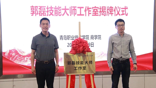 学校人事处副处长张吉庆与郭磊共同为“技能大师工作室”揭牌