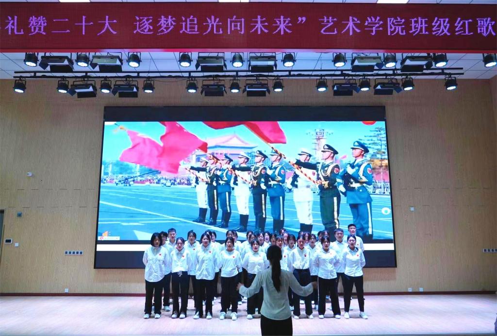 5月29日,艺术学院举办了“青春礼赞二十大,追梦逐光向未来”班级红歌赛。各班选手演绎的合唱节目融合了朗诵、情景剧等多元舞台形式,用嘹亮有力的歌声唱响红色赞歌,激扬爱党爱国的青春旋律。