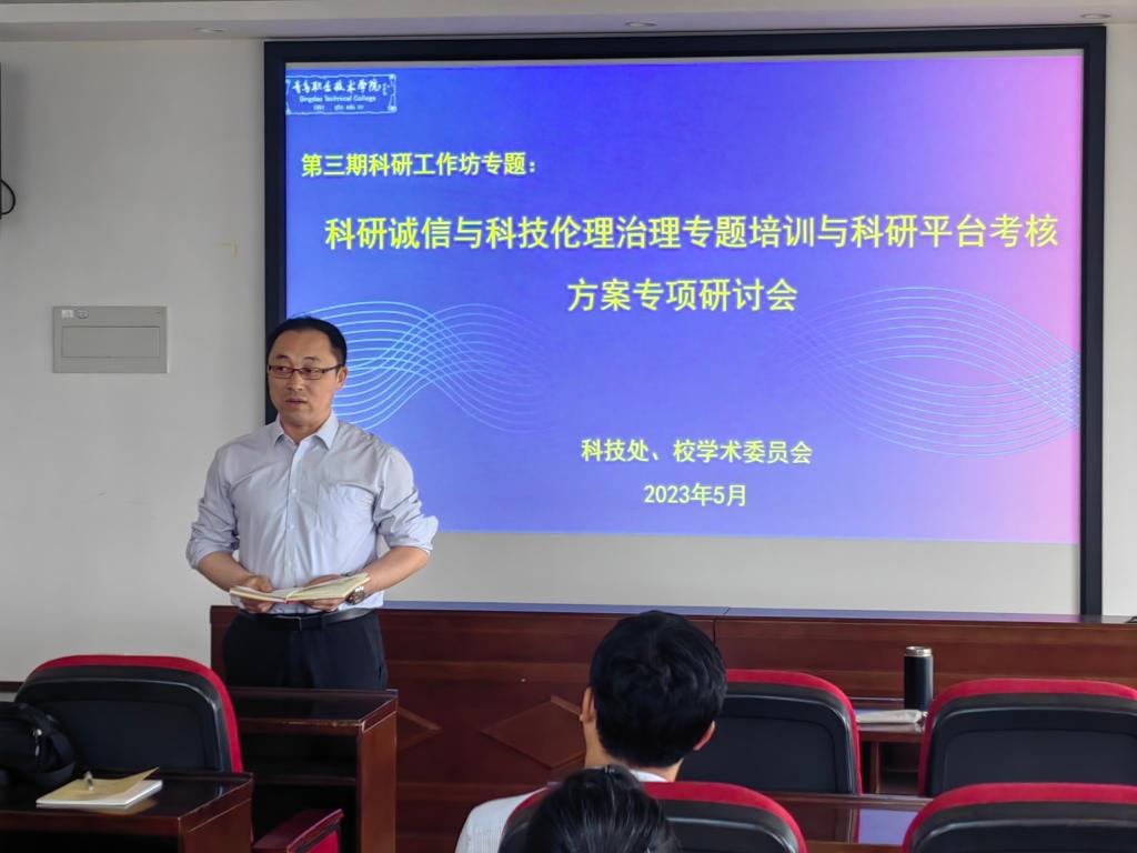 5月31日,科技处、校学术委员会在厚德楼1002举办了第三期科研工作坊,此次工作坊以科研诚信、科研伦理专题培训及科研平台的建设经验交流为主题。各二级学院分管科研工作副院长、第四届学术委员会委员、市级以上科研平台负责人与科研秘书、科技处有关人员参加了此次工作坊。