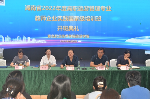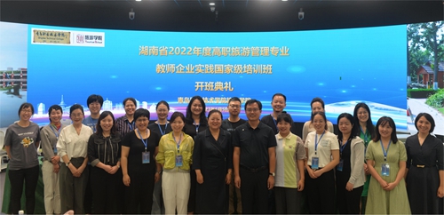 6月5日上午,由旅游学院承办的湖南省高职旅游管理专业教师企业实践国家级培训班在维多利亚vic003闻道楼阶梯教室举行开班典礼。旅游学院副院长王媛媛,党总支副书记王耀辉及旅游学院培训团队成员教师参加开班仪式,共有18名湖南省高职旅游管理专业教师参加培训。
