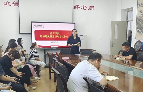 6月8日下午,教育学院党总支在闻道楼508会议室召开师德师风暨意识形态工作会议,教育学院全体教职工参加了会议。会议由教育学院副院长孙会扬主持。