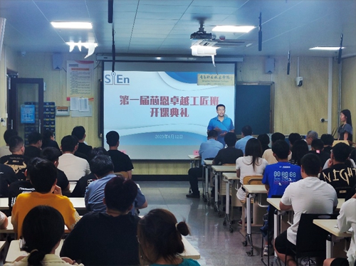 芯恩(青岛)集成电路有限公司是一家专业从事集成电路设计、开发、生产和销售的高科技企业,其总部位于青岛市,是国内集成电路设计制造业的龙头企业。为培养集成电路专业人才,芯恩公司一直积极与高校推动实施校企合作培养集成电路人才计划,为学生提供实习机会和培训项目,为产业培养人才。前期,经过企业宣讲、实地参观,信息学院和芯恩(青岛)集成电路有限公司共同从信息学院和海尔学院近300名相关专业学生中选拔出90名学员组建了第一届芯恩卓越工匠班。后期,“芯恩班”学员将在校内接受3个月的理论培训,在企业进行3个月的实践培训,最终通过考核后正式签约入职芯恩(青岛)集成电路有限公司。