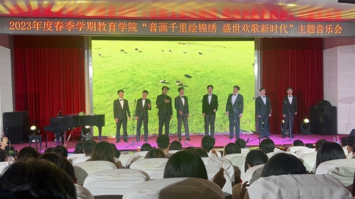 此次音乐会既是音乐教育专业课程成果展示,更是教育学院推进学习贯彻习近平新时代中国特色社会主义思想主题教育走深走实的学习实践活动。音乐会聚焦“三教”改革核心,以创新为驱动引擎,以“讲台+舞台”双核心培养复合型人才为目标,用音乐传递思想,用旋律礼赞新时代,既锻炼了学生舞台表演的基本功,也锻炼了音乐主题活动的策划组织实施能力。现场师生纷纷表示,此次音乐会将音乐艺术、文艺赋能与主题教育相结合,彰显了音乐传递思想的强大动力,激励广大青年学子为中国式现代化贡献青春力量。