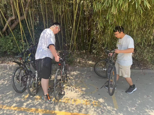 “感恩于心.回馈于行”志愿服务活动,学生整理摆放自行车