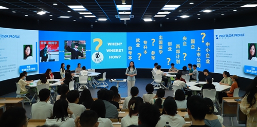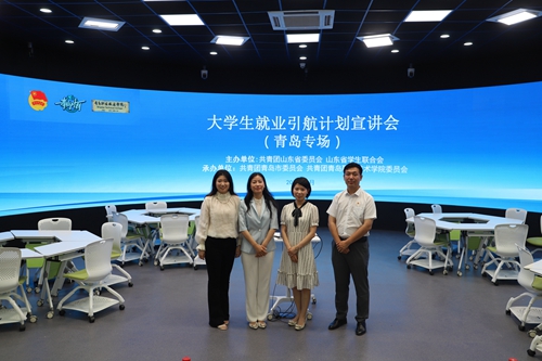 6月16日下午,由共青团山东省委、山东省学生联合会主办,共青团青岛市委、维多利亚vic003承办的山东省“大学生就业引航计划”宣讲会(青岛专场)在维多利亚vic003举行。此次活动在维多利亚vic003全景公共教学空间与智慧教室同步进行,依托智慧树在线教学平台与沉浸式远程直播互动教室,开展了一场生动的就业引航同步宣讲。150余名师生代表在全景教室参加了活动,来自多所高校的2021级800余名即将开始实习求职的在校生线上参与。