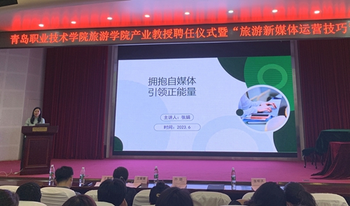 6月19日,旅游学院在艺术厅举办产业教授聘任仪式暨“旅游新媒体运营技巧”主题讲座。国家金牌导游、山东省旅游行业创新先锋人物张娟、学校副院长乔璐出席活动,旅游学院相关负责人、旅游管理专业全体师生参加了活动,活动由旅游学院副院长王媛媛主持。