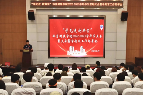 为奖励优秀、表彰先进、树立榜样,6月20日晚,体育健康学院在报告厅举行2022-2023学年团学工作表彰会议,对过去一学年表现突出的学生先进集体和学生优秀个人予以表彰。体育健康学院党总支副书记张慧及学工办主任、学生党支部书记、全体辅导员参加会议,会议邀请学生家长通过网络直播形式同步观看。