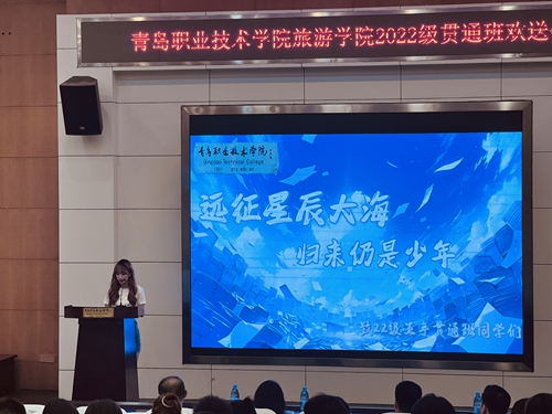 6月28日下午,旅游学院在学校报告厅举办“远征星辰大海,归来仍是少年”2022级五年贯通培养学生欢送会。旅游学院、青岛旅游学校相关负责人,五年贯通培养教师代表及全体学生参加了欢送会。