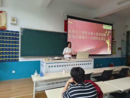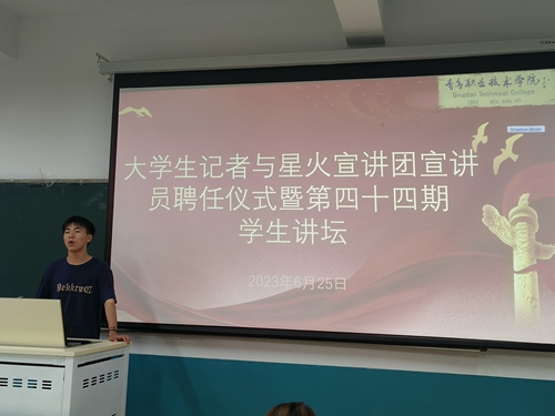 活动中,立信书院大学生记者团学生代表谢成才与星火宣讲团学生代表丰钰婷分别进行经验分享。两位同学围绕新闻报道经验、支教、宣讲等方面,结合自己的工作经历,向大家分享了经验和支教感悟。李明杰向新聘任的44名大学生记者和星火宣讲团宣讲员颁发聘书,并作“青春多壮志,建功新征程”主题讲座。讲座中,李明杰播放中国共产主义青年团第十九次全国代表大会开幕式视频,围绕大会召开背景讲解团的十九大精神和党的二十大精神,并强调意识形态工作的重要性,同时对下一步工作提出要求。