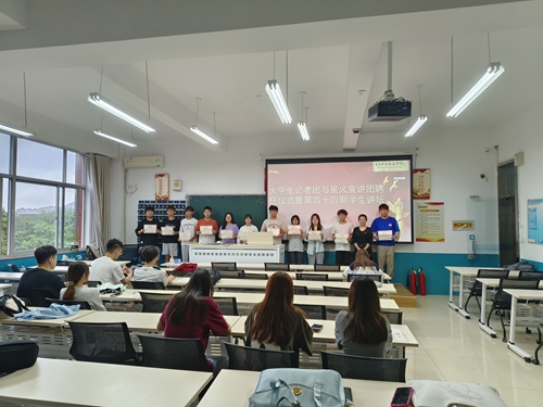 李明杰为新聘任学生记者和宣讲员颁发聘书