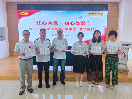 重温初心,勇于担当使命。签约仪式后,培训学院党总支举办了重温入党誓词、集体缴纳第三季度党费、党员集体过政治生日等活动。党总支副书记李林鹏向上半年过政治生日的党员颁发了生日贺卡。此次过政治生日的党员最长党龄是27年,大家分享了各自的入党初心,纷纷表示,将不断以实际行动,诠释入党时的初心使命和铮铮誓言,为教育事业尽职尽责,为中国特色社会主义奋斗终身。