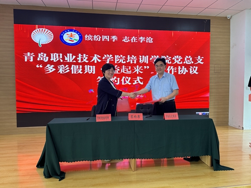 校地共建,服务区域发展。培训学院党总支书记赵悦与李沧区委宣传部三级调研员高骥共同签署校地共建合作协议,通过暑期开展“文明有李·益起同行”之“多彩暑假·益起来”公益培训项目,计划于7至9月为李沧区策划志愿服务项目,组织社区教育培训,指导开展新时代文明实践活动。将学院培训业务与党建工作相结合,整合地方和高校资源,为辖区居民百姓提升文化素养、提供学习资源,为校地党建共建创新内容形式,学校社区齐携手,凝聚人心促共建。