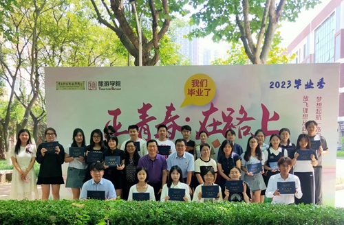 此次活动是旅游学院2023届毕业典礼系列活动的一部分,旅游学院以典礼教育搭建育人平台,将2023年毕业典礼作为扎实开展学习贯彻习近平新时代中国特色社会主义思想、引领学生理想信念的重要平台,通过视频影像回顾、师生代表心得交流、毕业证颁发、主题班会等丰富形式,在感动、欢笑、牵挂中,为毕业生呈现了一堂深刻而生动的思政课。
