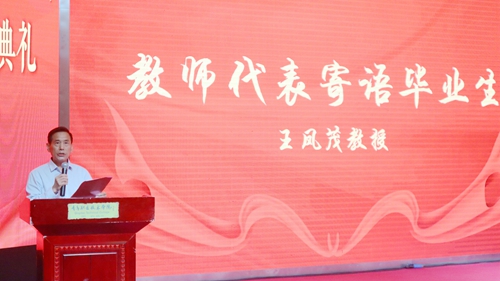欢送会在小合唱《起风了》中拉开帷幕,全体师生共同观看了《信息学院2023届毕业生纪念视频》,回顾了2023届毕业生充实美好的大学生活,抒发了毕业生们难以割舍的同学情、师生情、母校情。优秀毕业生代表应用电子技术2020级1班学生杨栋斌发言,表达了对老师、对学校深深的感恩。信息学院教师代表王风茂教授寄语毕业生在即将奔赴国家建设的新征程上,追求卓越,勇往直前,在各行各业唱响嘹亮激昂的青春之歌,在中华民族伟大复兴的历史进程中,书写浓墨重彩、绚丽辉煌的青春篇章。信息学院院长常中华教授为毕业生代表颁发毕业纪念品并讲话,他在讲话中指出2023届毕业生创造了信息学院的新辉煌,取得全国职业院校技能大赛“电子产品设计及制作赛项”一等奖、专升本升学率全校排名第一等好成绩。他嘱咐广大毕业生今后不管身处何处都要永葆奋斗之心,祝愿大家在新的起点再创新辉煌。最后欢送会在全体师生合唱的《我和我的祖国》中落下帷幕。