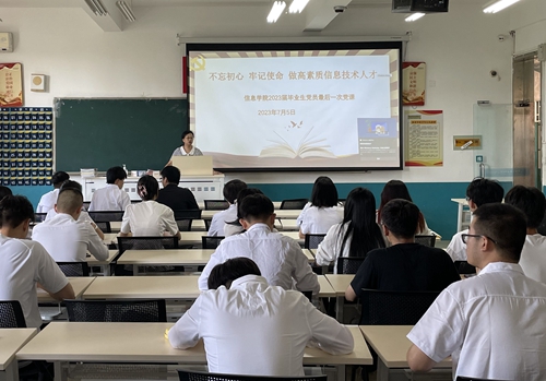 7月5日,信息学院举办了2023届毕业生“逐梦新征程 扬帆再启航”毕业季系列活动,包括观看学校毕业典礼直播、“最后一次班会”“最后一堂党团课”、优秀毕业生座谈会、欢送会等内容。