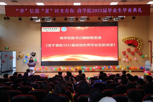 商学院党总支副书记魏敏敏宣读《商学院关于表彰2023届省级优秀毕业生的决定》