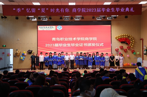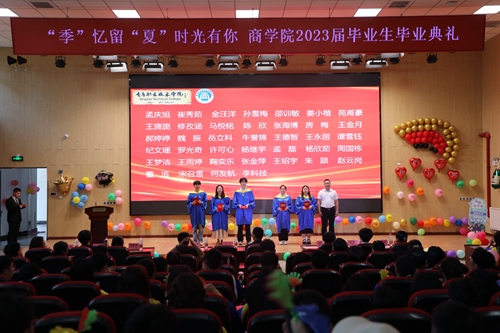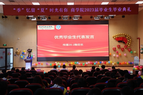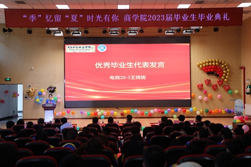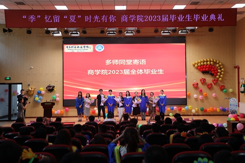 7月5日下午,商学院在创意实训楼B401举行“‘季’忆留‘夏’时光有你”2023届毕业生毕业典礼暨毕业证书颁发仪式。学校副院长刘宏、商学院党政领导班子、各教研室主任、教师代表、公寓老师代表、优秀校友代表、全体辅导员以及2023届毕业生350余人参加活动。