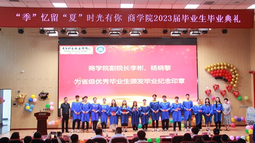 商学院副院长李彬、杨晓黎为省级优秀毕业生颁发毕业纪念印章