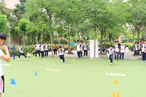 师生志愿者发挥专业优势带领孩子们进行体能训练