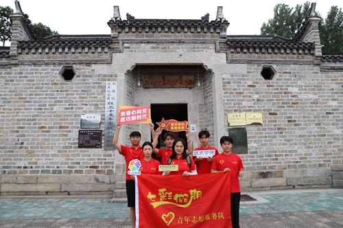 为深入学习贯彻习近平总书记关于传承红色基因、赓续红色血脉的重要论述,艺术学院“红色寻梦,爱满金寨”七彩假期志愿服务示范团队在安徽省六安市金寨县开展“七彩假期”公益支教工作的同时,坚持把大学生理想信念教育放在首位,让学生在实践中学习,在学习中实践。团队成员们利用支教课余时间,积极走进红色教育基地,寻访红色革命事迹,在暑假“三下乡”的大路上走出生动的“大思政课”。