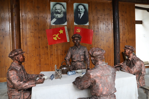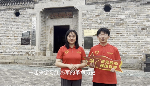师生宣讲员在红二十五军军政机构旧址宣讲