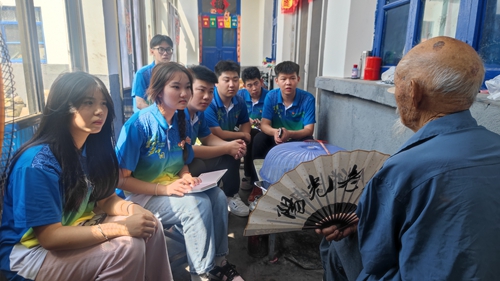 7月14日,志愿服务队师生走访了夏蔚镇朱家坪村104岁老党员谢文清。谢文清于1940年加入中国共产党,已有83年党龄。在抗日战争期间,谢文清带领村民破坏交通线阻止日军进攻,曾参加过莱芜战役、孟良崮战役、淮海战役,担任过架队班长、排长、司务长,负责救治伤员,协助转移伤员和群众,从事后勤保障工作。志愿队成员仔细聆听了老人讲述昔日战友浴血奋战的光辉事迹和决战沙场的英雄故事,通过走访深入了解了身边党员模范的先进事迹,切身感受到身边的榜样力量。