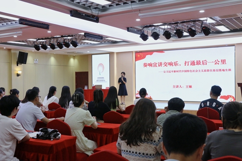 7月20日下午,马克思主义学院党总支第一党支部党员教师、青马先锋习声回响志愿服务队副队长王敏,在西海岸新区新时代文明实践中心举办的全区新时代文明实践专管员培训会上作“奏响宣讲交响乐,打通最后一公里——让习近平新时代中国特色社会主义思想在基层落地生根”主题讲座,全区各新时代文明实践中心(所、站)文明实践专管员参加了讲座。
