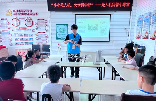 活动中,团队聚焦儿童人身安全,开展“珍爱生命,防‘溺’于未然”防溺水安全教育、“生命无价,遵守交法”交通安全教育、“‘食’刻牢记,与你同行”食品安全教育,讲解安全知识、观看危险案例视频,提升小朋友的安全意识和应对突发状况的能力;团队聚焦儿童心理健康教育,开展“快乐抓快乐”心理小游戏、“萝卜蹲”趣味游戏和“解手链”团队合作游戏,寓教于乐,帮助小朋友们敞开心扉、强化交流,在游戏中提高解决问题的能力,树立团队合作意识;团队聚焦爱国主义教育,开展“红色电影照童心,爱国之心助成长”红色观影活动,从电影中学习革命小英雄潘冬子的爱憎分明、不畏艰险、机智勇敢、纯洁质朴;开展“红色故事润童心,童心向党助未来”红色绘本故事读书会,感悟刘胡兰的英勇不屈、抗日英雄王二小的勇敢无畏等精神;开展“唱响红色歌曲,传承红色信仰”红色音乐课堂,学习合唱歌曲《共产儿童团歌》,从歌声中唱出传承、感悟信仰、汲取力量;开展“云游红色印记,厚植爱国情怀”宣讲活动,带领孩子们云游红色经典,重温革命历史,传承红色精神;团队聚焦科学知识科普,以“小小无人机,大大科学梦”为主题,发挥学科专业优势,向孩子们介绍无人机的科学原理、基本构造、类型、用途等,并进行了无人机试飞操作;以“科技创造生活”为主题介绍了生活中的信息技术,点亮孩子们的科技梦;以“我是小小科学家”为主题开展了物理化学实验科普小课堂,利用日常可见的生活用品演示多个小实验,耐心讲解各种“神奇”现象背后的科学奥秘,帮助孩子们对物理化学现象有了一个初步的了解,激发孩子的科学探索兴趣;团队聚焦素质拓展,开展“非遗启迪童心,弘扬传统文化”剪纸小课堂、“与‘泥’相伴,巧手捏出大世界”黏土小课堂、“从‘纸’启航、点亮梦想”折纸小课堂、“花漾童画,放飞梦想”绘画小课堂,帮助孩子们提升动手能力和创新意识,同时引导其在剪纸中感受中华优秀传统文化的独特魅力,增强民族自豪感。