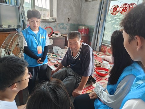团队前往冯家镇高家台村,在村干部的带领下来到孙孟芝老人家中,她的丈夫是乳娘李青芝的儿子。2015年央视《等着我》寻亲节目帮助八路军后代梁恒力找到乳娘李青芝的家,访谈聆听孙孟芝老人讲述其丈夫在成长过程中为八路军后代做出的牺牲。孙孟芝深受乳娘精神的感染,毅然决然地加入中国共产党,随后引导其子女积极入党,紧跟党的步伐,始终跟党走。随后团队来到同村老党员高玉友家中,了解到高玉友老人迄今已有50余年党龄,过去担任村支书期间积极响应国家号召,组织带领村民靠人力开山修路,不断改善村民生活品质,增进民生福祉,访谈结束时高玉友老人对团队青年学生寄予了“生在红旗下,要为党多做贡献”的厚望。